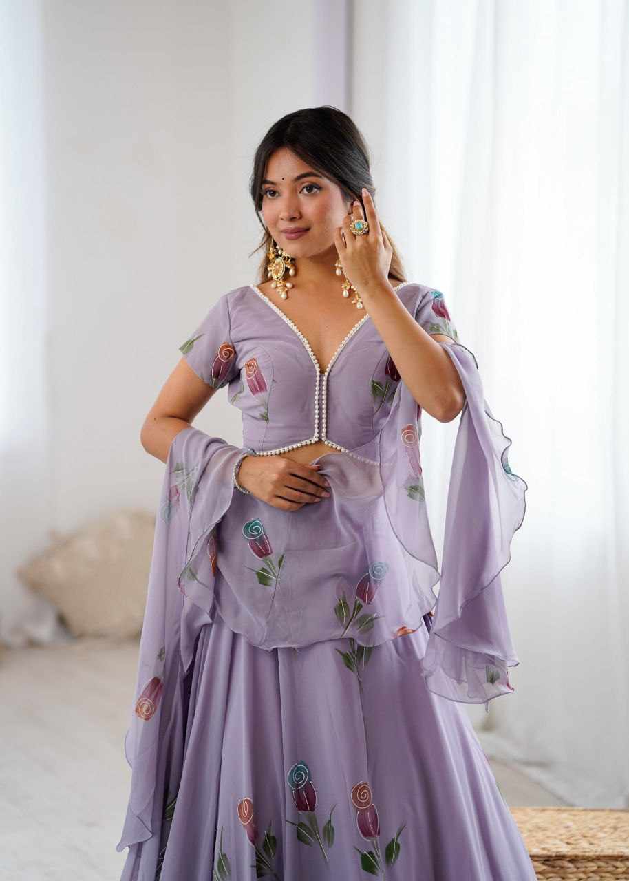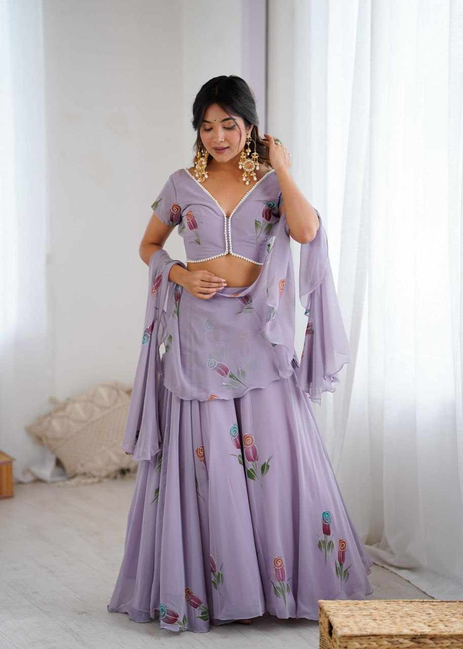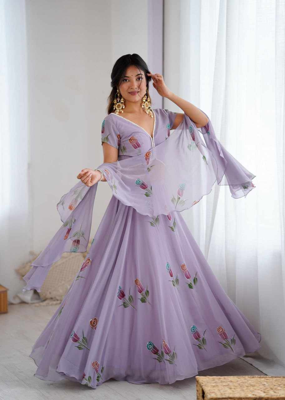 Lehenga - Pure Georgette hand painted lehenga
